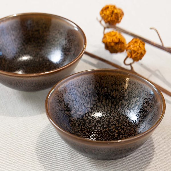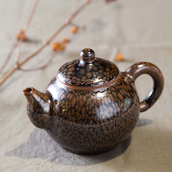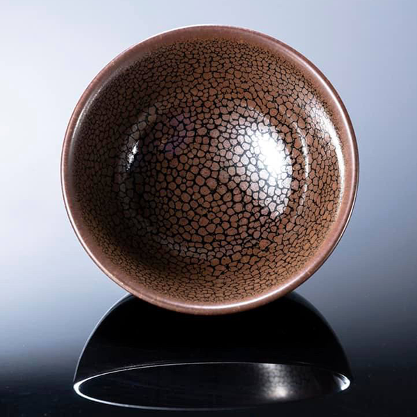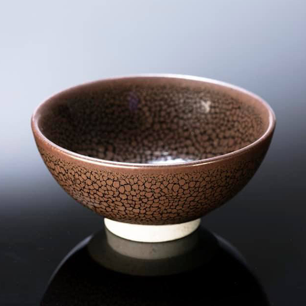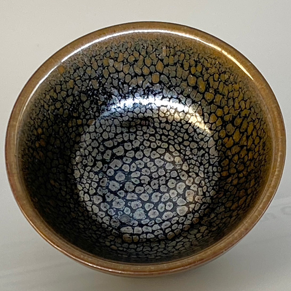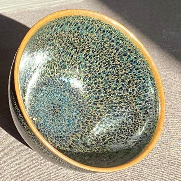 天目釉即黑釉,瓷器釉色之一,施黑釉的瓷器稱黑釉瓷。黑釉瓷在宋代由浙江傅至日本,被稱為「天目」。天目釉即黑秞,瓷器釉色之一,施黑釉的瓷器稱黑釉瓷。初見於東漢時期,與青釉同黑燒製,至東晉時,新江德清窯黑釉瓷色澤光亮如漆,形成批量生產的規模,宋代建寨,古州窯也燒造黑瓷,以建焦最為著名。北宋晚期燒製內府用茶具,在黑釉上利用鐵的結晶,燒出了「油滴」、「免毫」等不同圖紋的品種。黑釉瓷在宋代由漸江傅至日本被稱為「天目」。建窯黑址在福地省建陽水吉鎮,以產黑瓷而著稱。唐代始創燒,南宋為極盛時期,終於清代。建熏原是江南地區的民窯,北宋晚期由於「門茶」的特殊需要,燒製了專供宮廷用的黑蒸,胎體厚實、堅致,色呈淺黑或紫黑。建案黑茶器,深受日本茶道喜愛,把歷代保存下來的建盞視為國寶。按其油色、紋樣、產地、收藏者等不同而各有其名稱,曜變天目、油滴天目、玳瑁天目、免毫天目、鷓鴣斑天目、星盞天目等等。